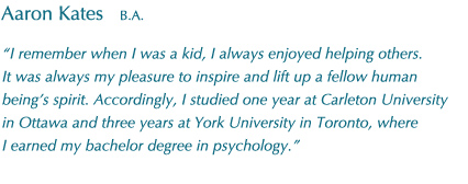 Aaron originally wanted to become a therapist and assist clients with their own personal issues. Through his studies and learning; he discovered that approximately half of client’s issues have become somewhat do to financial distress. (This is his opinion) Having a burden of debt on your shoulders can lead to both physical, mental and emotion stress. This may lead to relationship problems, health issues and lack the feeling of true happiness.
